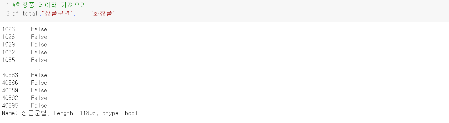 어떤 값이 들어있는지 unique() 로 확인하면 화장품만 있는 것을 확인할 수 있다.
