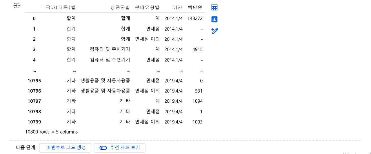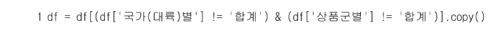 '합계'를 제외시킨 후 df에 선언 시켜주었다.