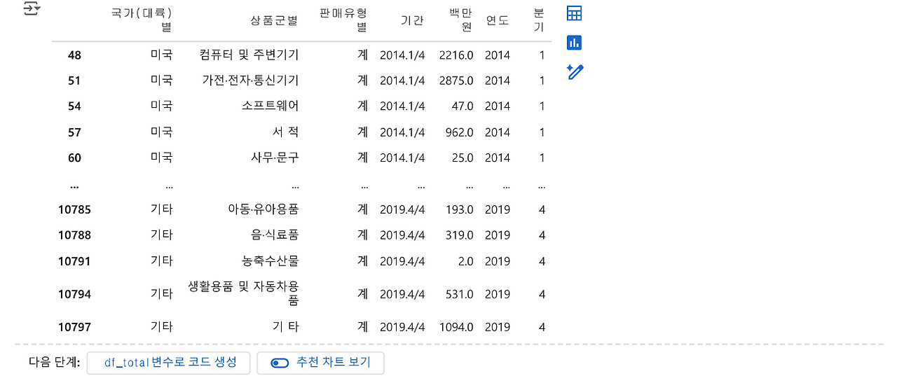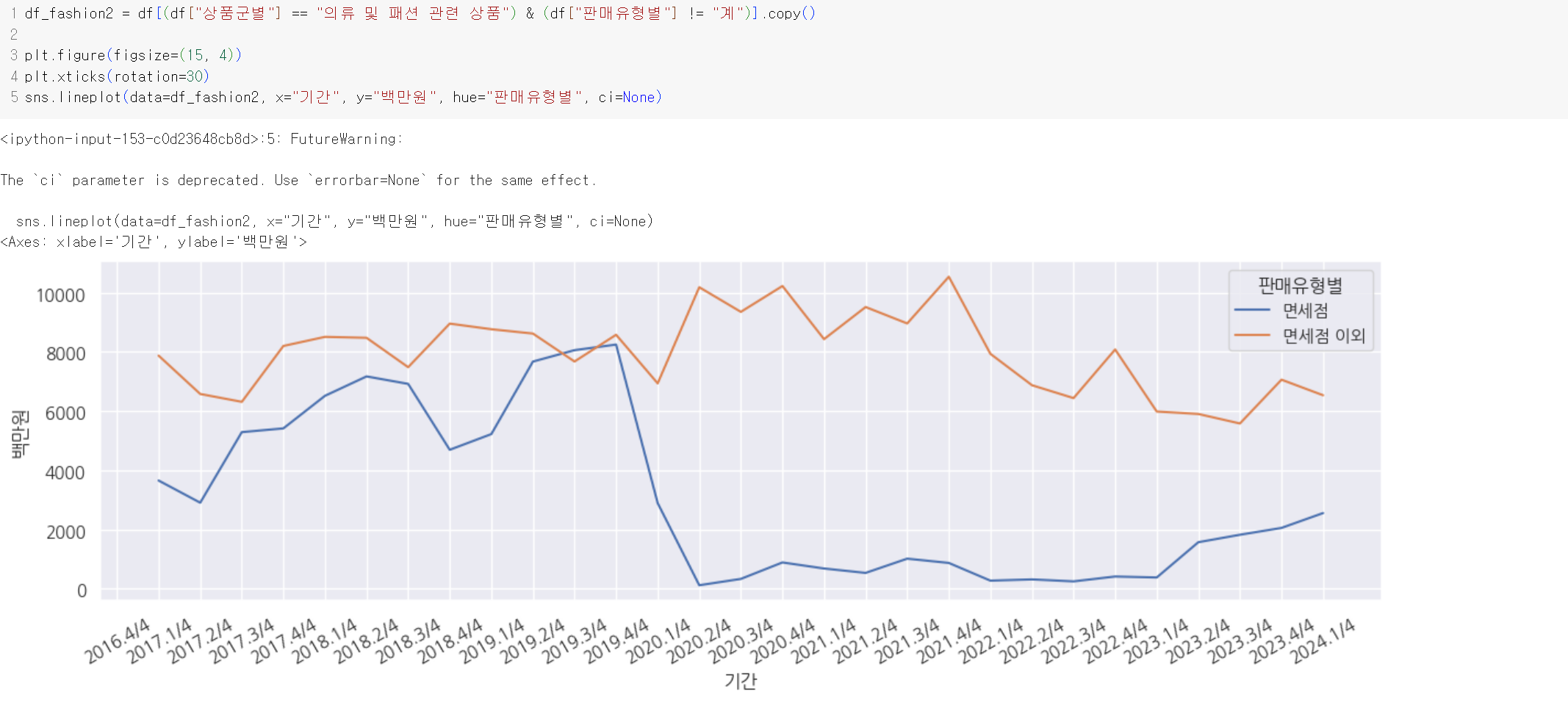 이후 판매유형별이 '계'인 데이터를 df_fashion에 넣었다.