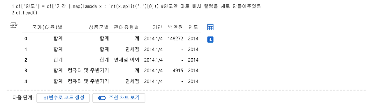 위의 함수를 사용하여 df에 새로운 column을 만들어 주었다.