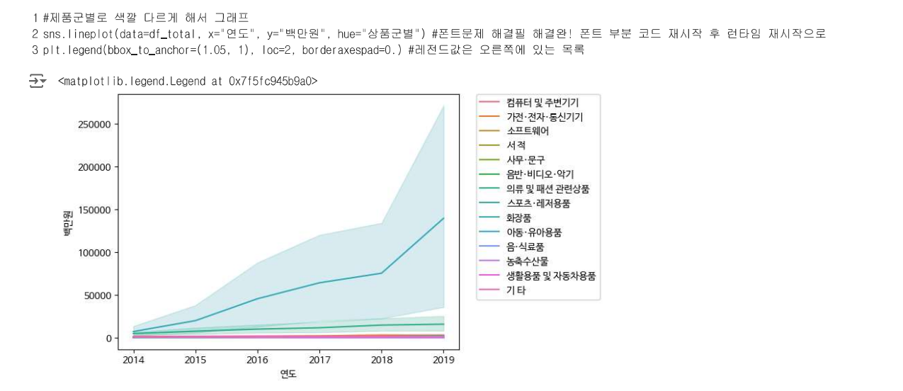 위의 그래프는 한 번에 너무 많은 정보가 탑재되어있기에 각각의 그래프를 상품군별로 분리해주자.
