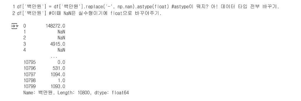기본 df데이터 프레임에서 결측치는 '-'로 나타나 있었다.