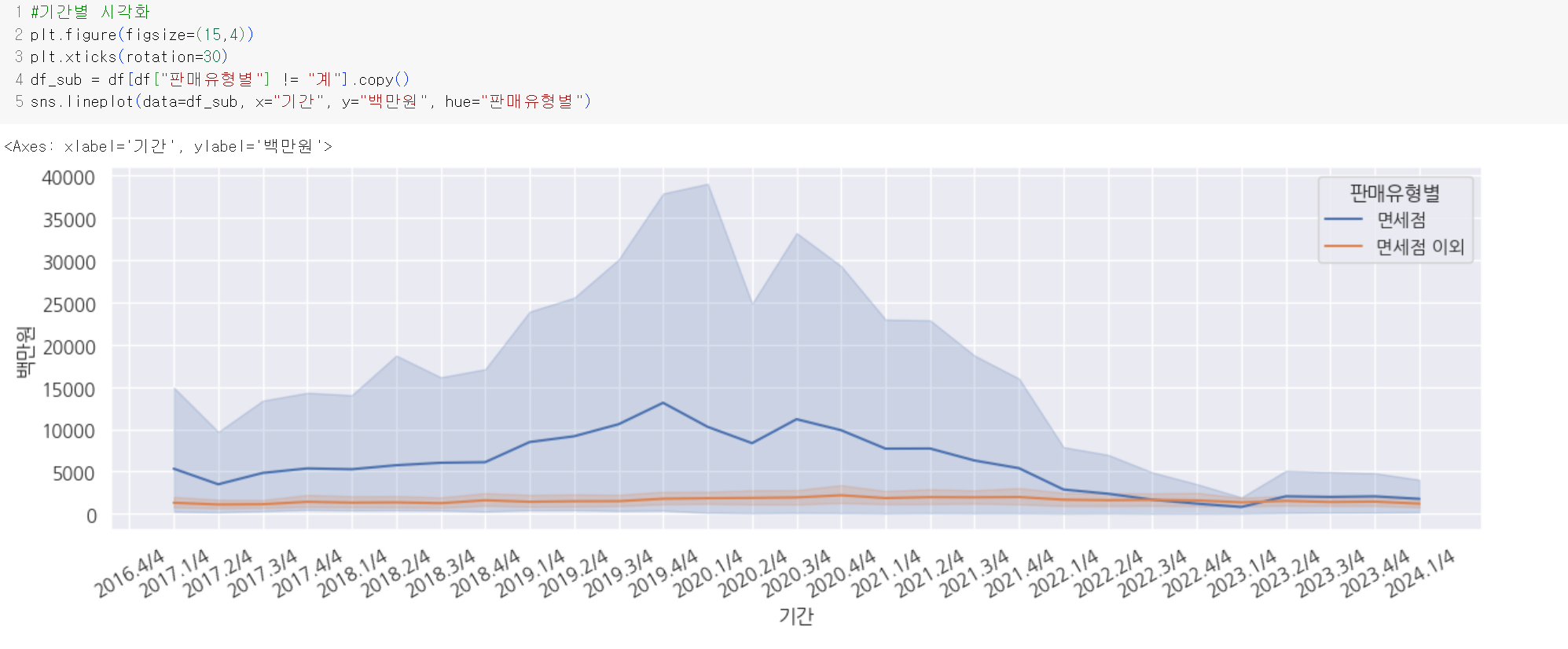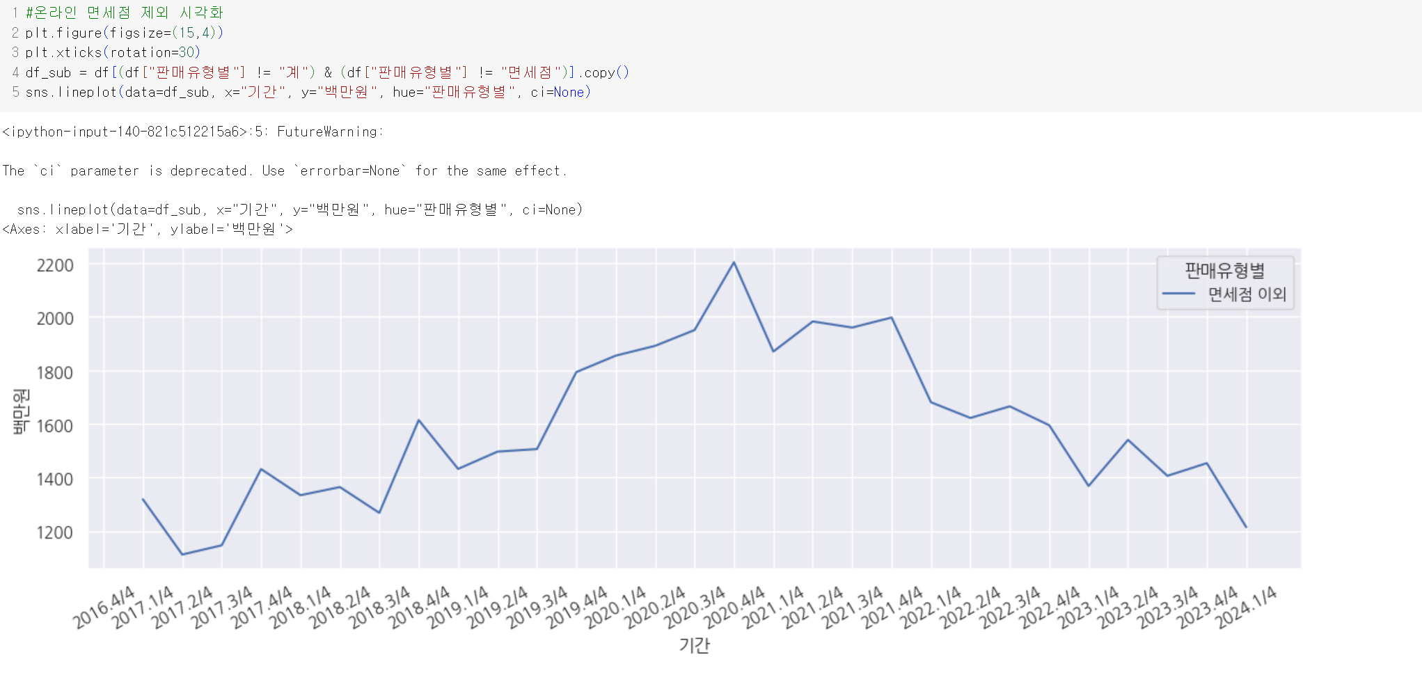 2019년 이후 면세점 판매액이 훅 감소하였다는 사실을 확인할 수 있다.