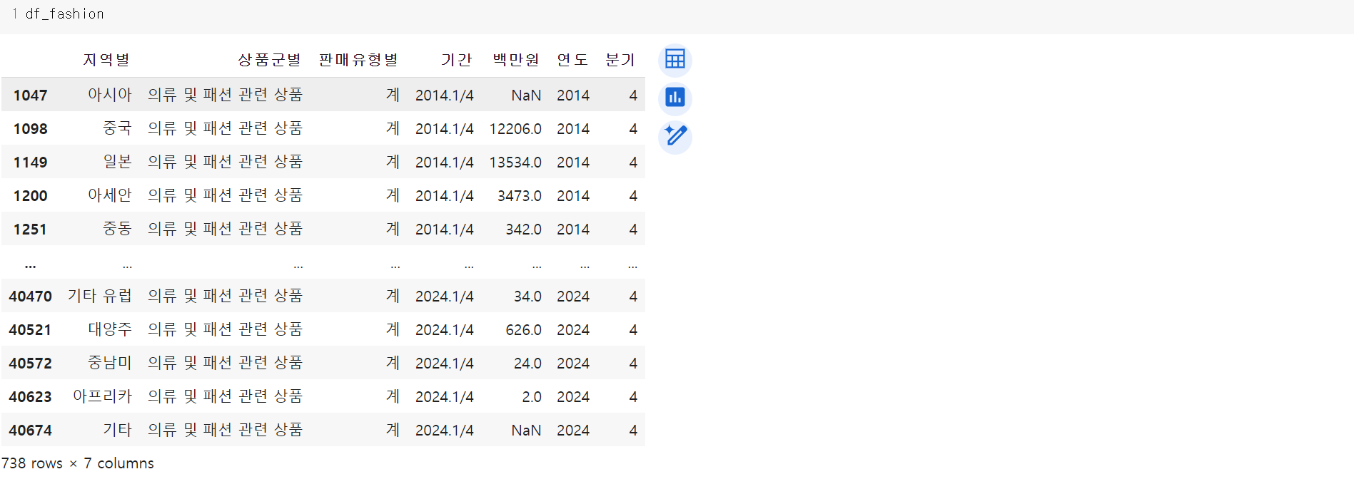 df_fashion = df[(df["상품군별"] == "의류 및 패션관련 상품") & (df["판매유형별"] == "계")].copy()