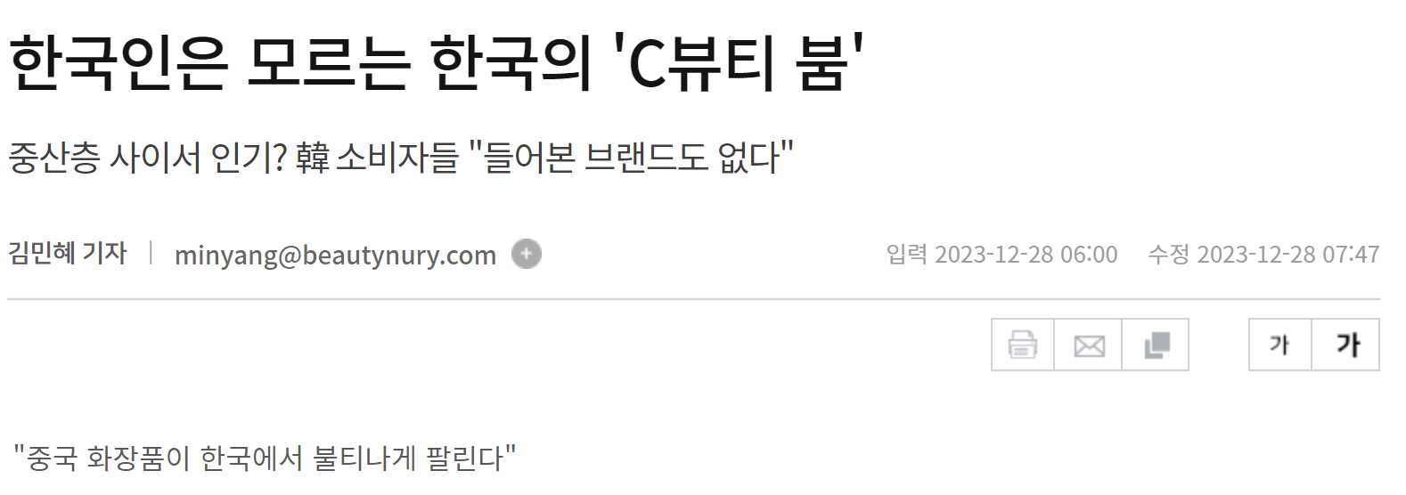 "지금까지 발생한 여러 사회적 사건을 바탕으로 현재 왜 K-Beauty가 지속적인 하락세에 빠져있는지 알아보고자 한다." 라는 문제의 가장 큰 이유는 "C-Beauty"였다.