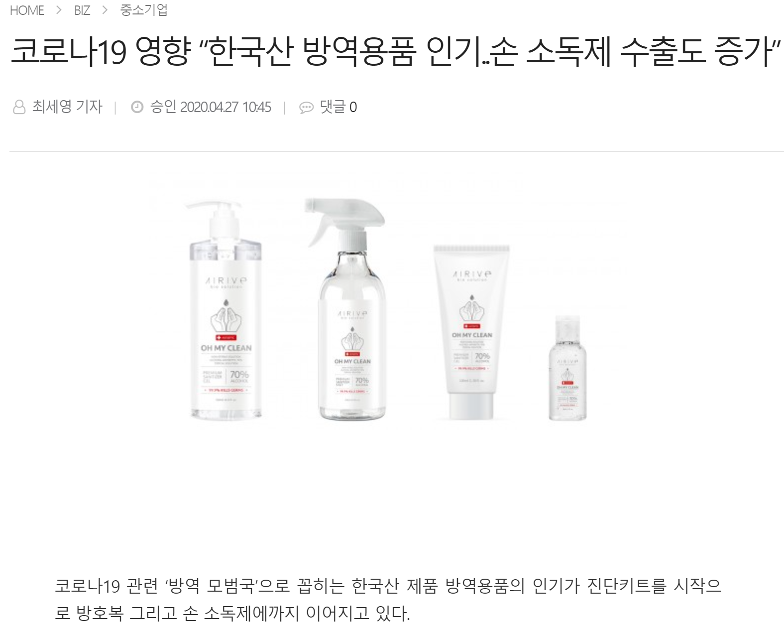코로나19의 확산을 막기 위해 전 세계적으로 손 씻기와 소독의 중요성이 강조되었다. 이에 따라 손 세정제, 마스크, 소독제 등 방역 용품에 대한 수요가 폭발적으로 증가하였다. 한국은 우수한 제조 능력과 높은 품질로 인해 방역 용품의 주요 공급국으로 부상하였다.