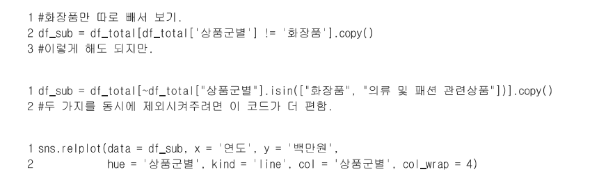 화장품과 의류 및 패션 관련상품 모두를 제외시켜 주어야 하기에,