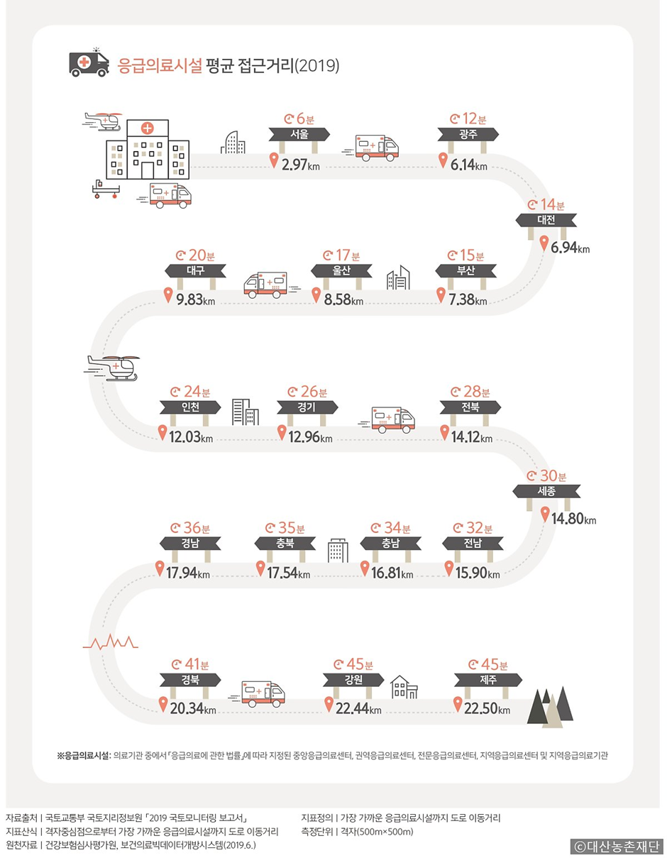 ▶ 응급실까지 서울 6분, 전남 32분, 제주 45분