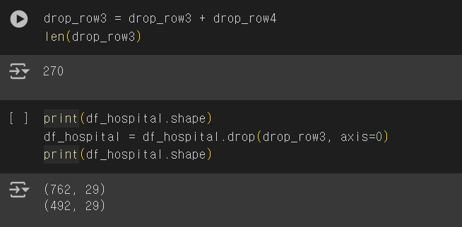 2) 종합병원이 아닌 데이터를 제거할 준비!