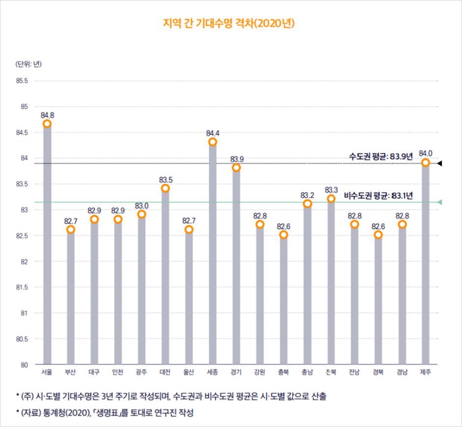 ▶ 수도권과 비수도권 기대수명 격차는 0.8년
