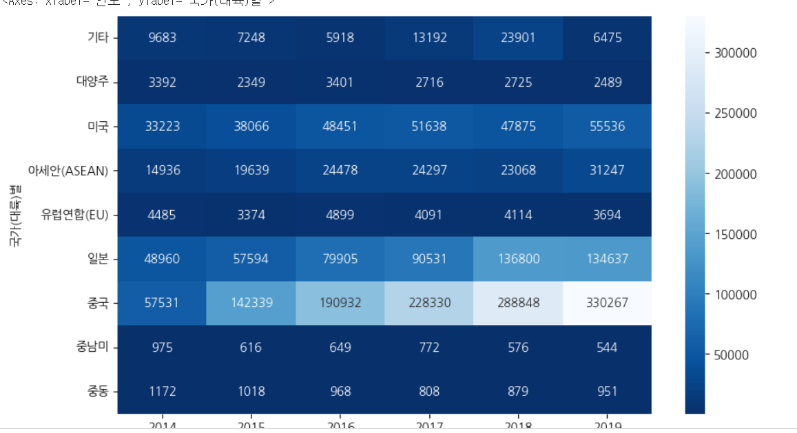 df=df[(df["국가(대륙)별"]!="합계")&(df["상품군별"]!="합계")].copy()