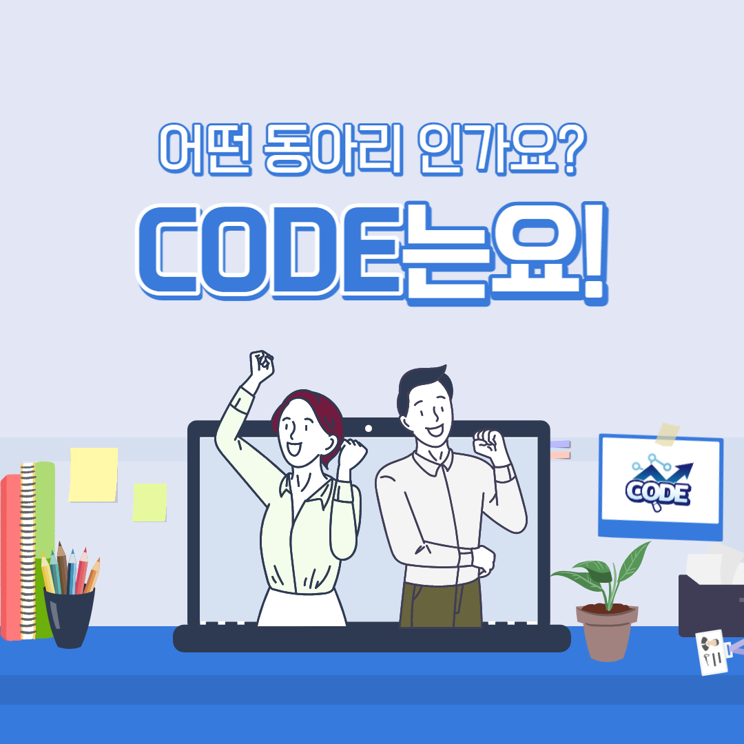 안녕하세요, 함께 배우고, 함께 성장하는 CODE입니다!