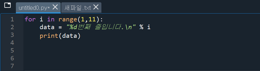 위의 두 코드는 결과값이 유사하게 나오지만, data를 출력하는 방법이 상이하다고 할 수 있다. 왼쪽 함수는 새파일.txt 라는 파일 내에서 데이터를 적게끔 하는 방법이고, 오른쪽 함수는 기존 함수와 같이 실행할 경우 모니터 화면에 데이터가 바로 출력되는 방법이라는 점에서 차이가 있다.