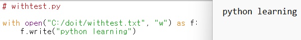 with문을 사용하기 전까지는 파일을 열고 close를 사용해서 파일을 닫았다. with문은 이러한 일련의 과정을 자동으로 할 수 있게 해준다.