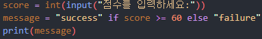 조건부 표현식을 사용하면, 긴 if 조건식을 간단하게 표현할 수 있다.