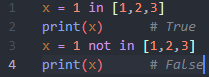 in, not in 은 다른 형태의 조건문을 구성하게 해준다. 그 예시는 다음과 같다.