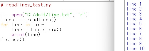 readlines 함수는 파일의 모든 줄을 읽어 리스트로 전환한다.