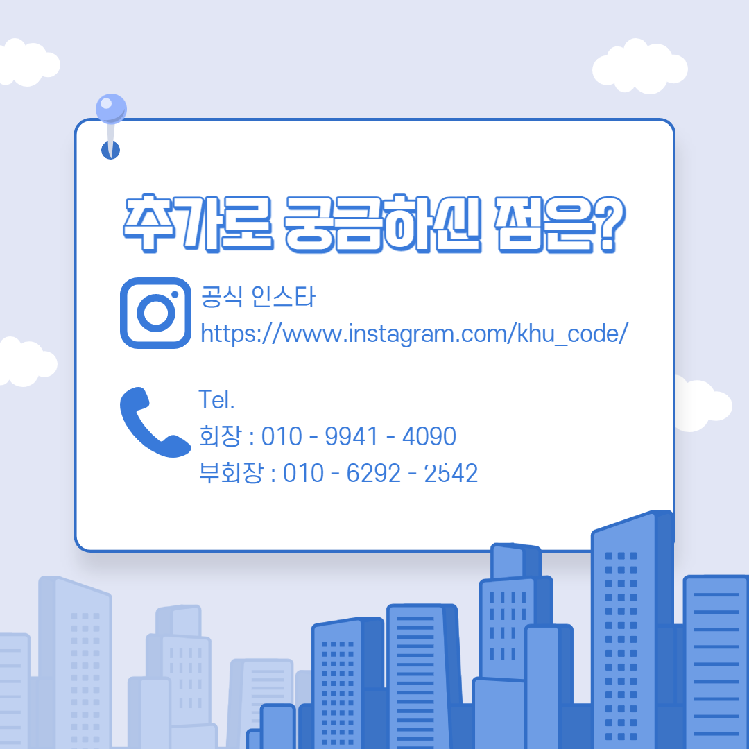 | [2023 1학기] CODE 개강 총회 (0) | 2023.03.09 |