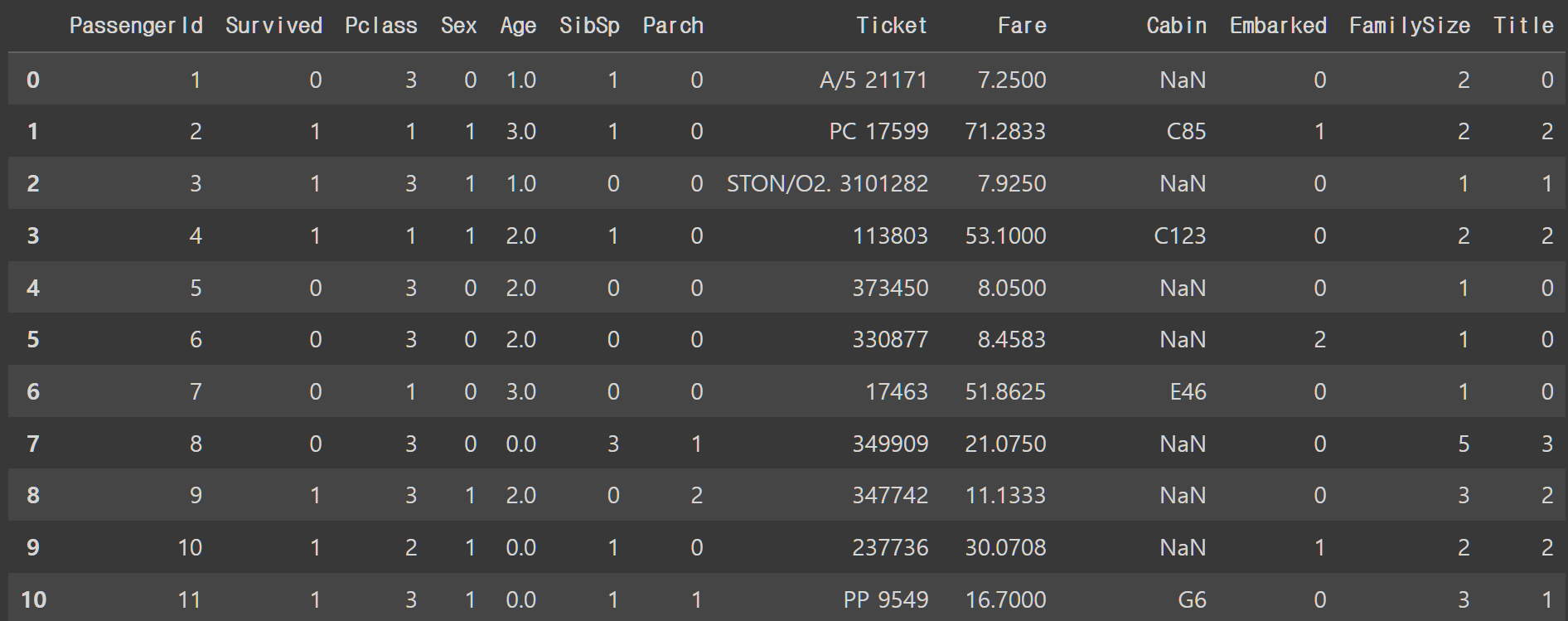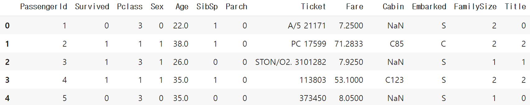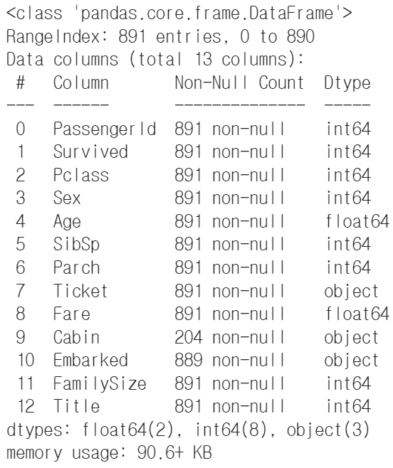 train 데이터셋은 891개의 행과 12의 열로 이루어져 있음을 확인할 수 있습니다.
