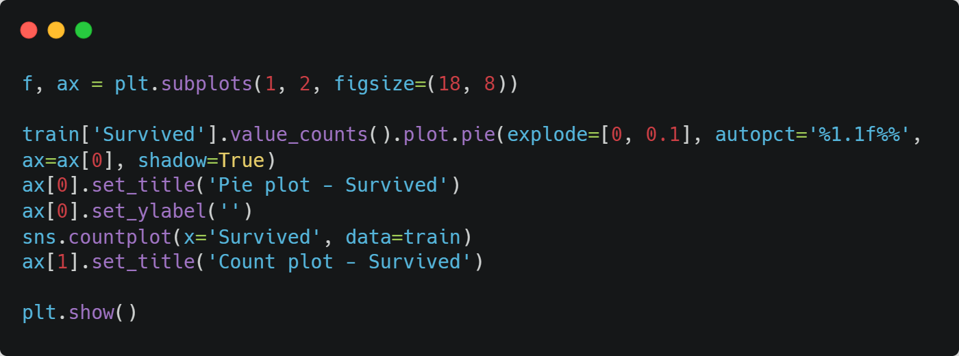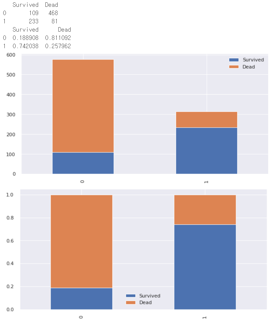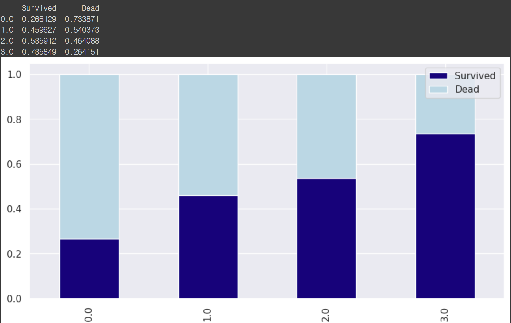 다음으로 생존율을 시각화해 보았습니다. 코드와 결과는 다음과 같습니다.