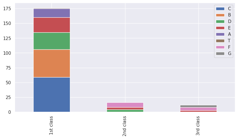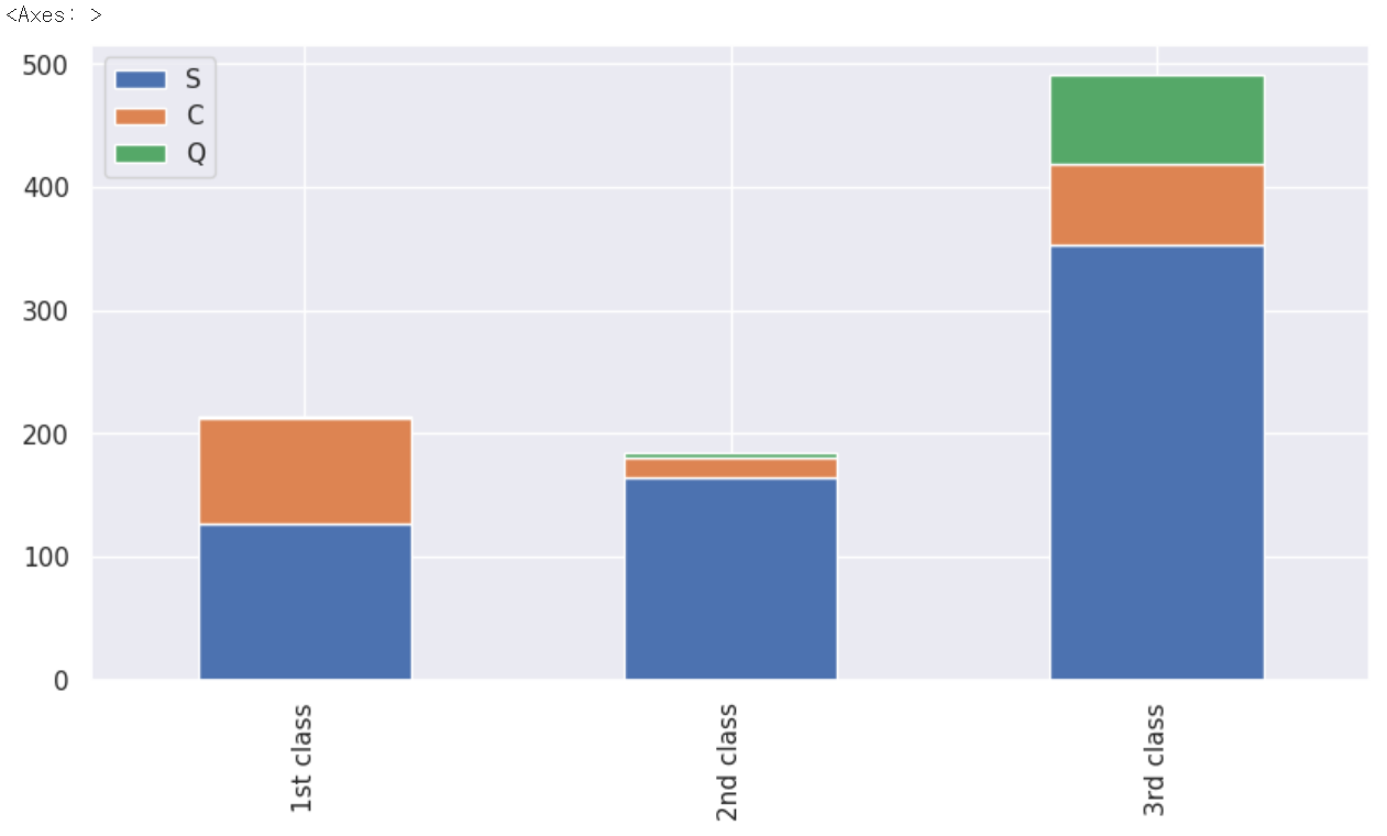 (4) - Class별로 살펴본 결과 C가 생존확률이 높은 건 클래스가 높은 사람이 많이 타서 그런 것임음을 확인할 수 있습니다. 마찬가지로 S는 3rd class 가 많아서 생존확률이 낮게 나옴을 확인할 수 있습니다.