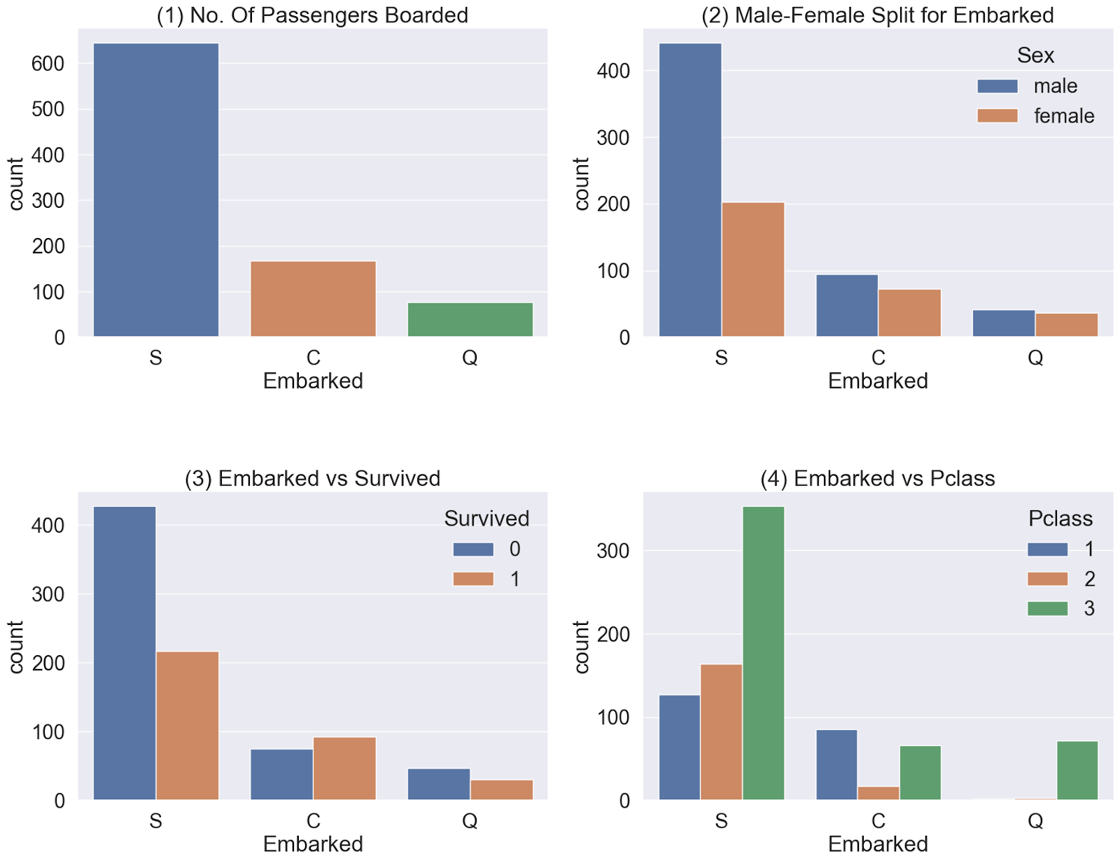 (1) - 전체적으로 봤을 때, S에서 가장 많은 사람이 탑승했음을 확인할 수 있습니다.
