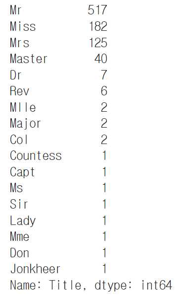 dataset['Title'] = dataset['Name'].str.extract(' ([A-Za-z]+)\.', expand=False)