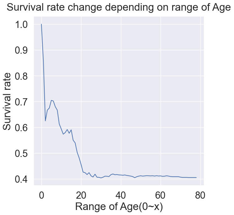 또한 나이에 따른 생존율을 시각화해 보았습니다.