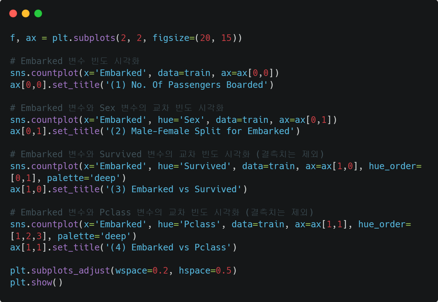 (3) - 생존확률이 S 경우 많이 낮음을 확인할 수 있습니다