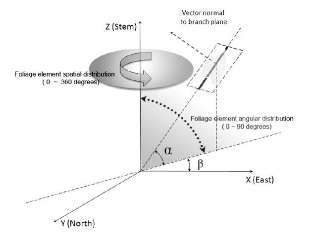 베타 = 잎의 방위각 (잎이 어디로 향하고 있는지 즉, 0-360도 사이)