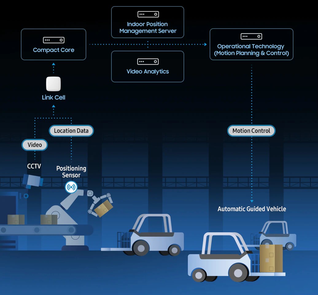 AI가 AGV 차량을 통제하여 필요한 제조 라인에 원자재를 운반하거나 생산된 생산품을 창고로 운반하는 등 물류 이동 전반에 걸쳐 AI가 활용된다.