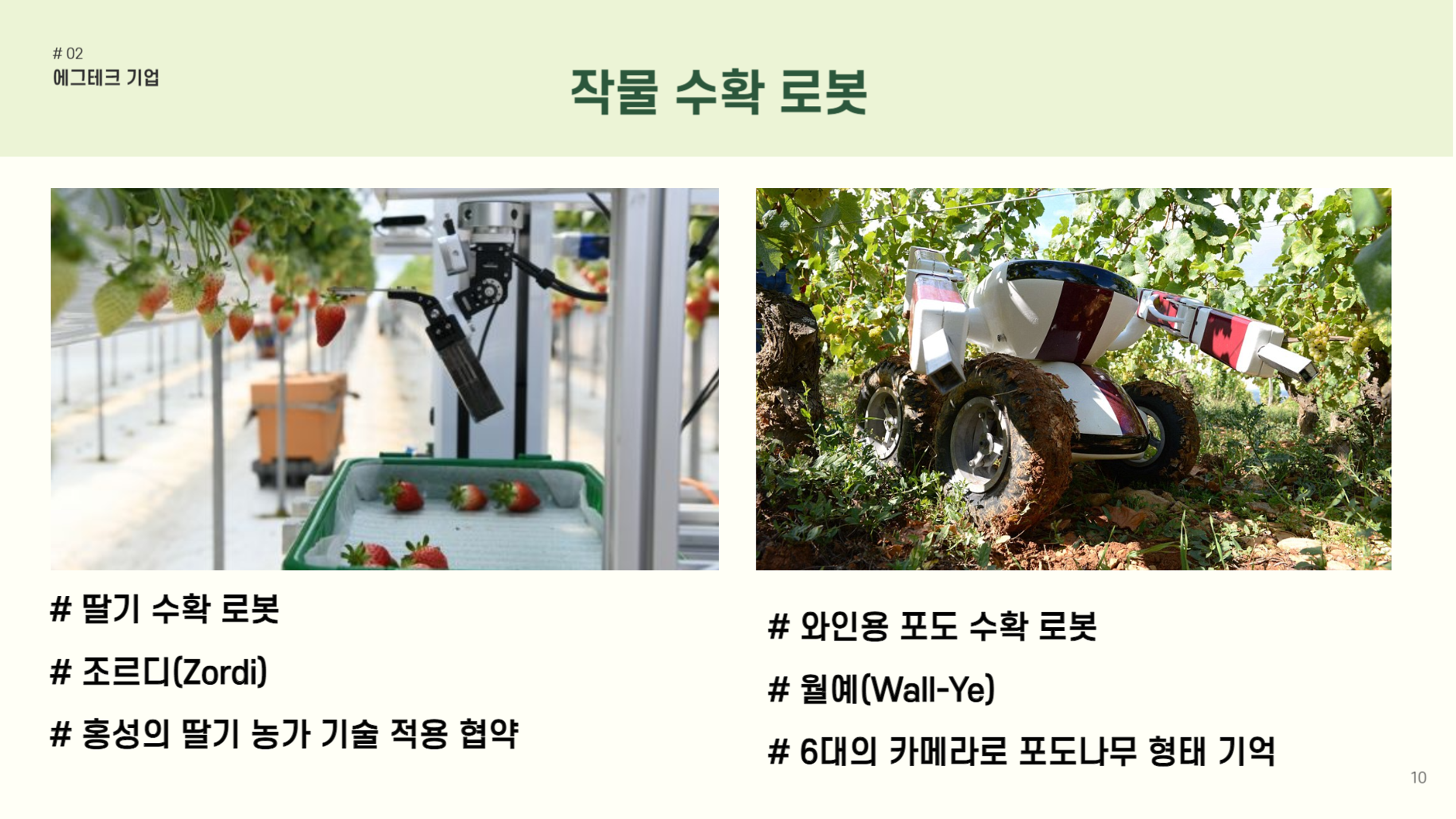 파종, 제초 뿐만 아니라 수확의 과정에도 애그테크 기업이 존재합니다.