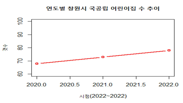 그래프를 보면 수가 증가하고 있긴 하나 증가폭이 매우 미세하다. 그래서 우리는 국공립 전환 사업이 떠오른 현 시점, 증가폭이 늘리는 것 이 적절하다고 판단했다.