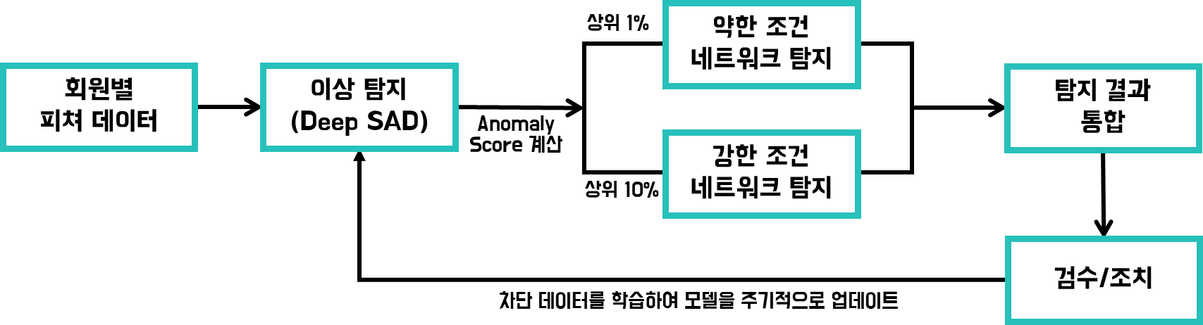 1. 탐지 대상 필터 : 준지도 학습 이상 탐지로 이상 회원들을 탐지합니다.