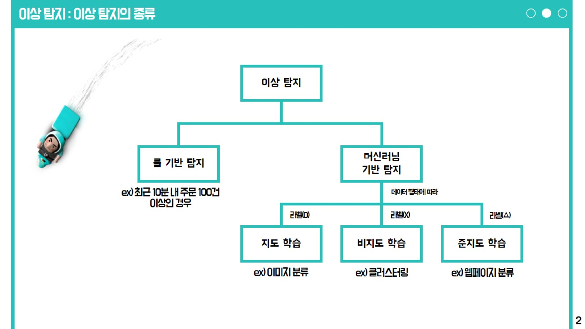 위 그림에서 알 수 있듯, 이상 탐지는 크게 '룰 기반 탐지'와 '머신러닝 기반 탐지'로 나뉩니다.