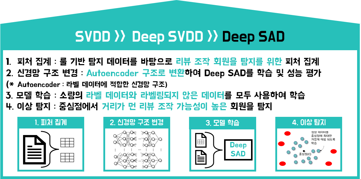 Deep SVDD에 라벨 데이터를 처리할 수 있는 부분을 추가한 알고리즘입니다.
