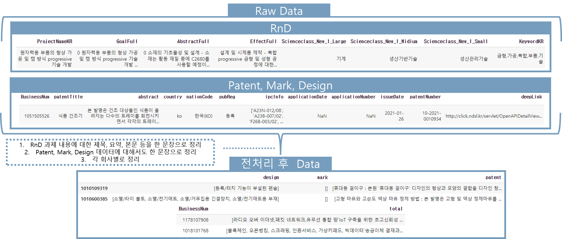 RnD, 특허, 상표, 디자인권 등 지식 재산권 데이터 전처리 과정입니다.