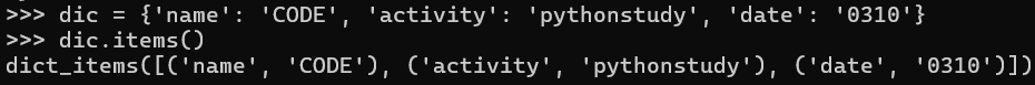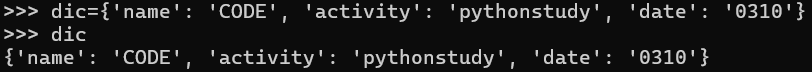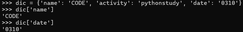 >>> name = '김코드' >>> age = 3 >>> f'나의 이름은 {name}입니다. 나이는 {age}입니다.' '나의 이름은 김코드입니다. 나이는 3입니다.