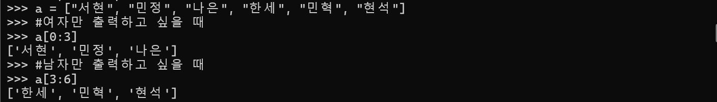 3. 해당 문자열의 전체를 뽑아내고 싶을 때 : 번호 모두 생략 가능 >>> a[:]