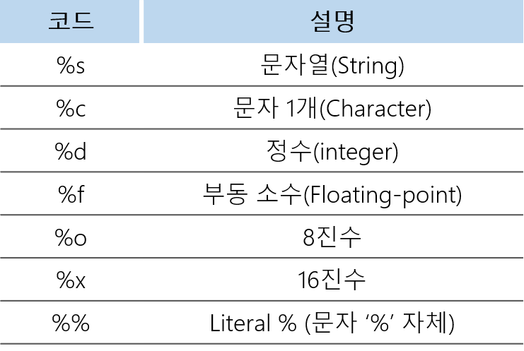 여기서 %s 포맷 코드는 어떤 형태의 값이든 변환해 넣을 수 있다.
