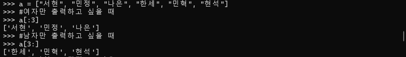 3. 해당 문자열의 전체를 뽑아내고 싶을 때 : 번호 모두 생략 가능 >>> a[:]