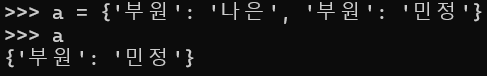 >>> name = '김코드' >>> age = 3 >>> f'나의 이름은 {name}입니다. 나이는 {age}입니다.' '나의 이름은 김코드입니다. 나이는 3입니다.