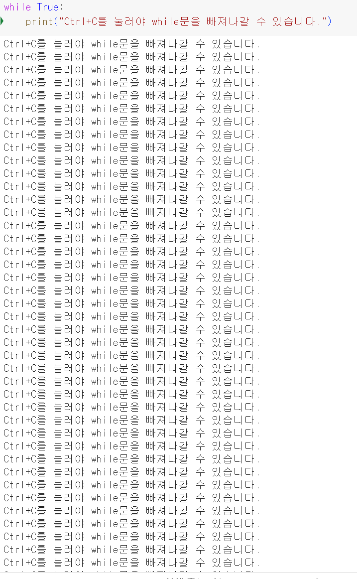고로 여기서도 while 문은 조건문이 참인 동안에는 계속 반복적으로 수행하는 걸 볼 수 있다. 그치만 만약 강제로 while문을 빠져나가고 싶다면 ??