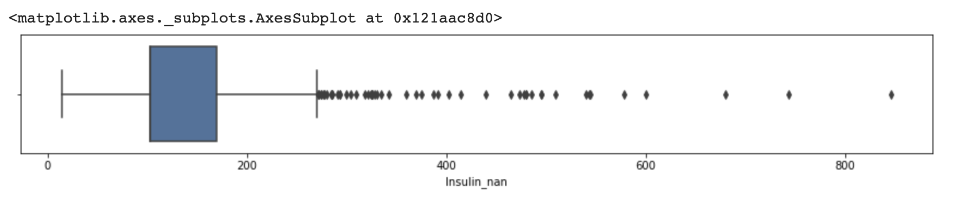 값은 6.610136660522583, 2.989168040586707으로 그래프와 정보와 비교하였을 때 우리가 찾는 이상치 임을 알 수 있다. 따라서 Insulin_nan에서 값이 유의미하지 못했던 이유는 정규분포가 아닌 곳에 식을 적용했기 때문이다.