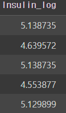 결측치를 제거한 Insulin값에 log를 취하고 그 값들을 살펴보면 다음과 같다.