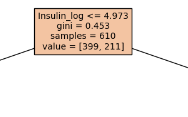Pregnancies 컬럼이 제외되었고 대신 Pregnancies_high 컬럼이 사용되는 것을 볼 수 있습니다. Pregnancies_high의 dtype이 boolean인 것도 확인이 됩니다. 비록 데이터타입이 int나 float이 아니지만, DecisionTreeModel이 False는 0, True는 1로 인식하기 때문에 학습에 문제가 되지 않습니다.