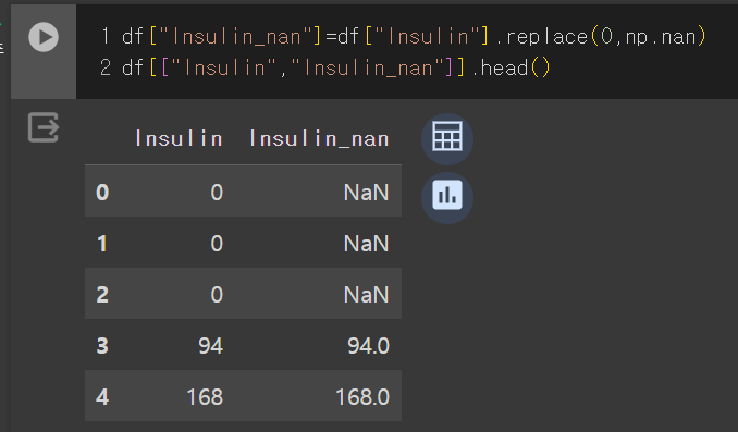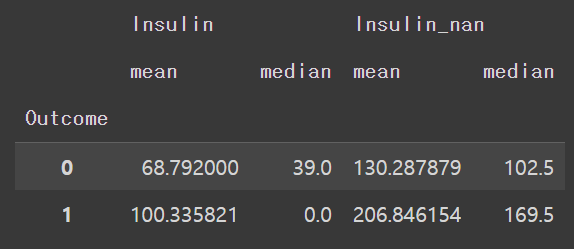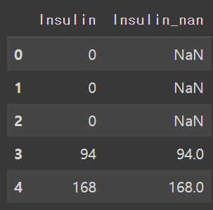# Insulin_nan 열의 값에 로그를 취합니다. 이 때, np.log1p 함수를 사용하여 0인 경우를 대비합니다.