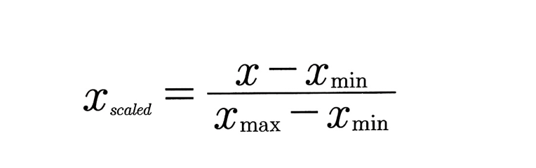 최솟값과 최댓값을 기준으로 0 에서 1, 또는 0 에서 지정값까지 값의 크기를 변화시키는 기법이다. 이때 이상치가 있을 경우 값의 분포가 왜곡될 수 있다.
